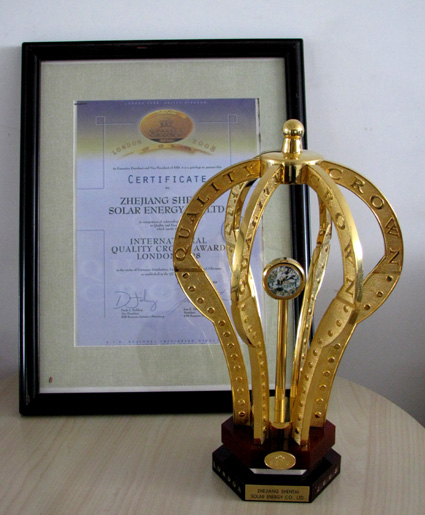 太陽能有限公司榮膺“國際質(zhì)量皇冠獎(jiǎng)”。神太公司也和通用、可口可樂、格力空調(diào)等世界500強(qiáng)企業(yè)一同進(jìn)入了BID質(zhì)量領(lǐng)袖國際質(zhì)量獎(jiǎng)的榮譽(yù)殿堂。